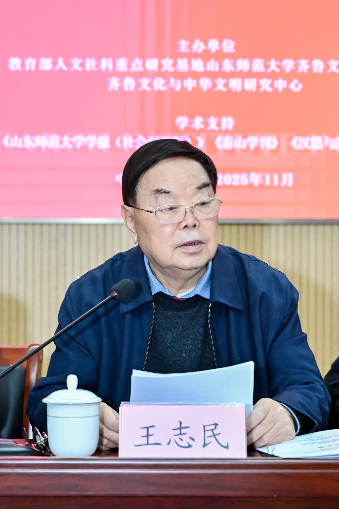 王志民在讲话中指出,相对于西方的轴心时代,中国历史上也存在一个诸子时代,但诸子时代的内涵、外延、时间范围等如何界定,都需要进行深入研究。齐鲁文化与诸子时代有着密切关系,齐鲁文化不仅坚守传统,而且具有包容不同学派、促进思想创新发展的显著特点,为中华文明的多元发展提供了丰富的精神资源。希望与会专家通过此次会议形成一个有共识、有深度的结论,为推动诸子时代和中华文明传承创新研究做出新的贡献。