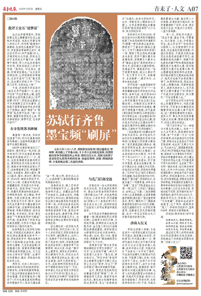 我与黄河文化地标|苏轼行齐鲁,墨宝频“刷屏”